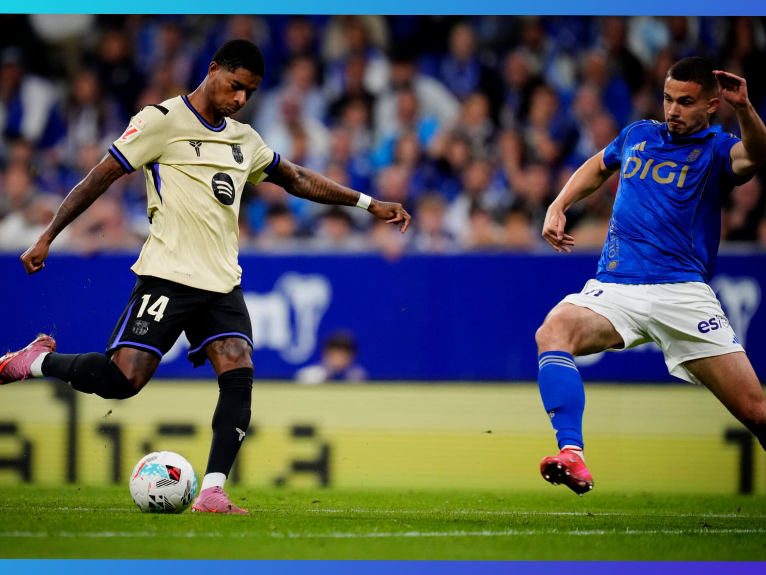 Le promu Oviedo a démarré avec intensité, multipliant les occasions sur coups de pied arrêtés. Malgré une large domination du ballon, le Barça a manqué d’efficacité : Rashford a buté à deux reprises sur le gardien Aarón Escandell, Raphinha a trouvé le poteau et Araujo a vu son tir repoussé sur la ligne.